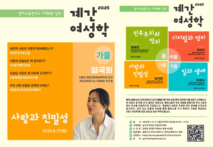 2025년 가을에는 젠더교육연구소 이제IGE 연구원이자 서울대 협동과정여성학 전공 강사인